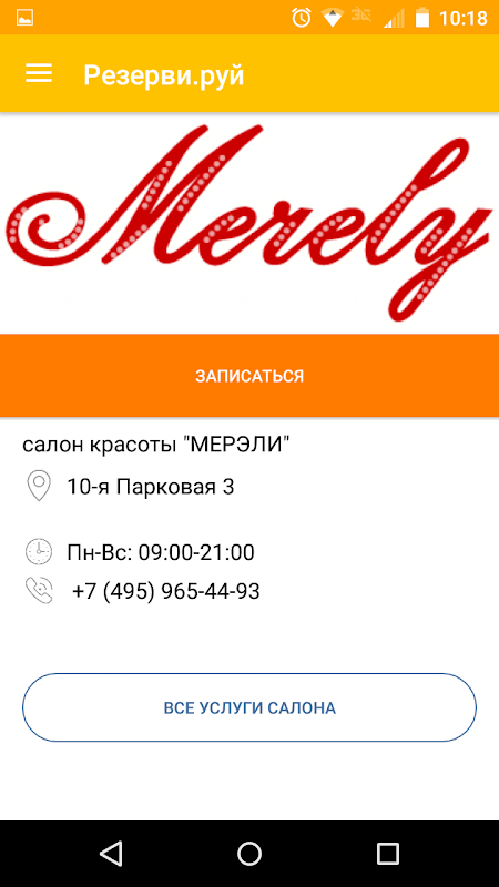 Приложение для оформления заказов в салоны красоты, которые в системе Резерви.руй.