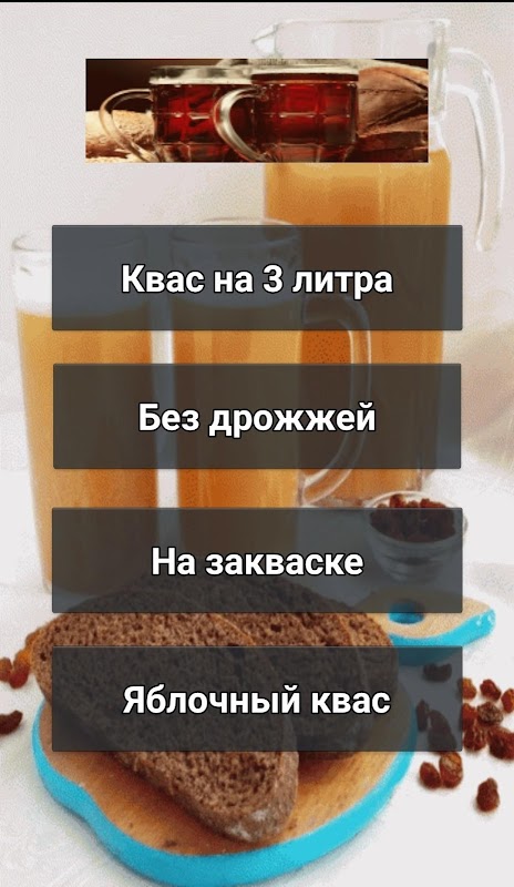 С помощью нашего приложения вы сможете приготовить вкусный квас в домашних условиях. В приложении представлены самые популярные и проверенные рецепты кваса из хлеба, с дрожжами и без дрожжей, а так же вкуснейший рецепт яблочного кваса.