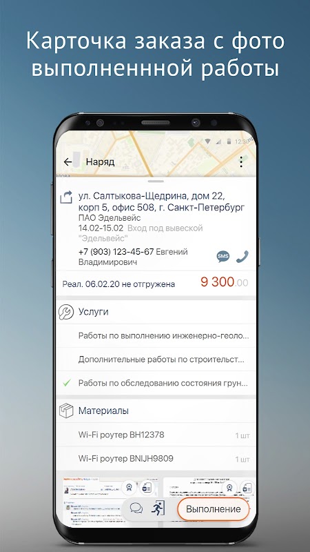 — Работа офлайн — загруженные данные сохранятся даже без интернета, а при появлении связи автоматически добавятся в карточку выездной работы.