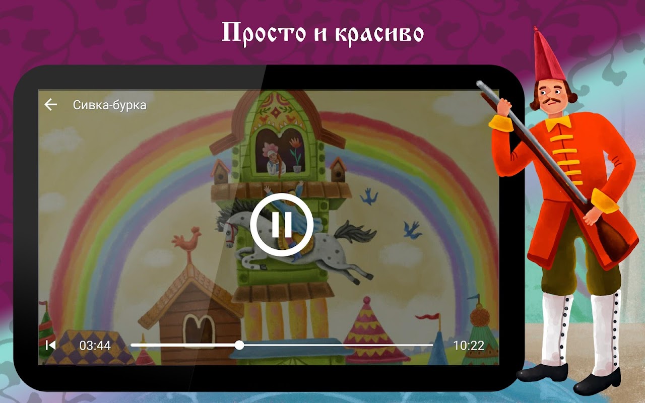 Простое и удобное приложение с русскими народными аудиосказками. Каждая сказка снабжена ярким стилизованным графическим сюжетом. Есть возможность скачать и прослушать офлайн.