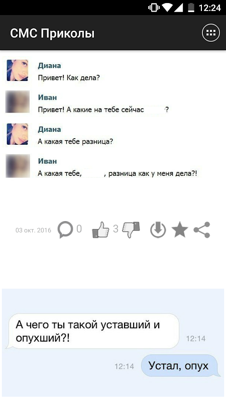 Сборник самых смешных СМС приколов и шуток. СМС приколы для телефона и планшета. Переписки из социальных сетей. Ежедневное обновление приколов и СМС'ок. Смотри приколы у нас! Подборка особо удачных веселых моментов из переписок. Смешные фото и прикольные картинки. Читать смешные смски и переписки это весело!