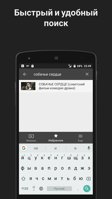 - возможность добавлять полюбившийся вам фильм в раздел Избранное