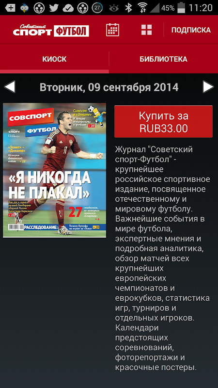 Киоск еженедельника «Советский спорт-Футбол» позволит вам читать электронную pdf-версию популярного спортивного журнала. В киоске вы можете купить как свежий номер издания, так и оформить подписку на длительный период. В этом случае стоимость каждого отдельного номера будет во много раз ниже. Подписка на электронную версию газеты обойдется намного дешевле, чем на ее бумажный аналог с доставкой на дом. Издание выходит один раз в неделю по вторникам. При оформлении подписки вам сразу поступает свежий номер издания.