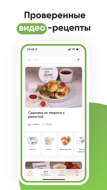 در اپلیکیشن موبایل، دستور العمل های ویدئویی تایید شده و منتخب برای صبحانه، سالاد، پیش غذا، غذاهای گرم و دسر را خواهید یافت.
