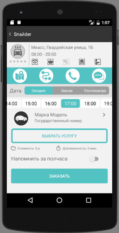 Приложение для записи на автомойку "Спайдер" (Миасс, Гвардейская улица, 1Б)