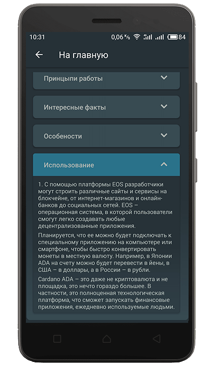 Приложении будет интересным не только новичкам в этой теме, но и тем людям которые уже знают многое о криптовалютах, потому что мы старались найти найболее интересную и малоизвесную информацию и включили ее в приложение о криптовалютах.