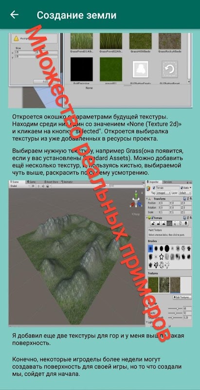 این افزونه جزئیات اصول ایجاد بازی در Unity3D را نشان می دهد و توضیح می دهد. یک نمونه عالی از ایجاد یک صحنه وجود دارد. همه روش های صرفه جویی در بازی ها شرح داده شده است، کلاس ها: شی، تبدیل، زمان، mathf، rigidbody، Raycast. جزئیات دقیق هر نوع برخورد دهنده، روشنایی را از هم جدا کرد. ایجاد چند نفره نشان داده شده است. بسیاری از ویژگی ها برای راحتی کار با متغیرها توصیف می شوند. همچنین نشان می دهد چگونه کامپایل بازی در آندروید.
