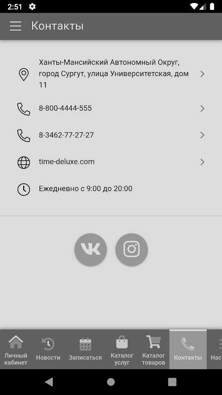 شما قادر به ایجاد یک تماس تلفنی به طور مستقیم از برنامه، و همچنین رفتن به پروفایل های شبکه های اجتماعی استودیو زیبایی و عضویت در آنها می شود.