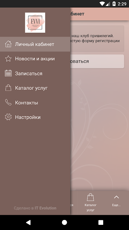 Mobile application for customers of beauty and studios of permanent makeup "Evvi"