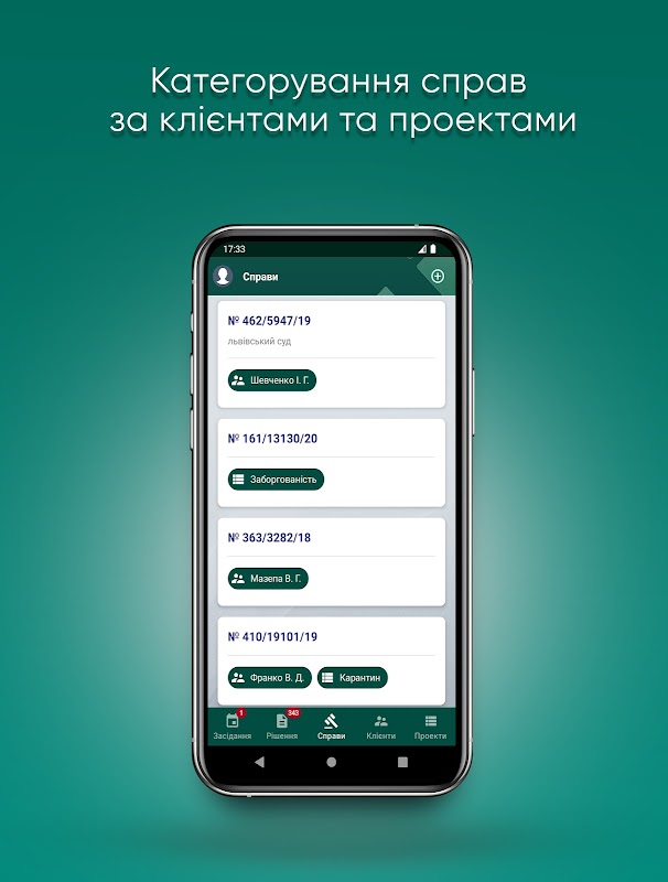برنامه ما به شما کمک میکند پروندههای دادگاه را پیگیری کنید و درباره تصمیمات و جلسات دادگاه بهروزرسانی دریافت کنید. توابع اصلی: