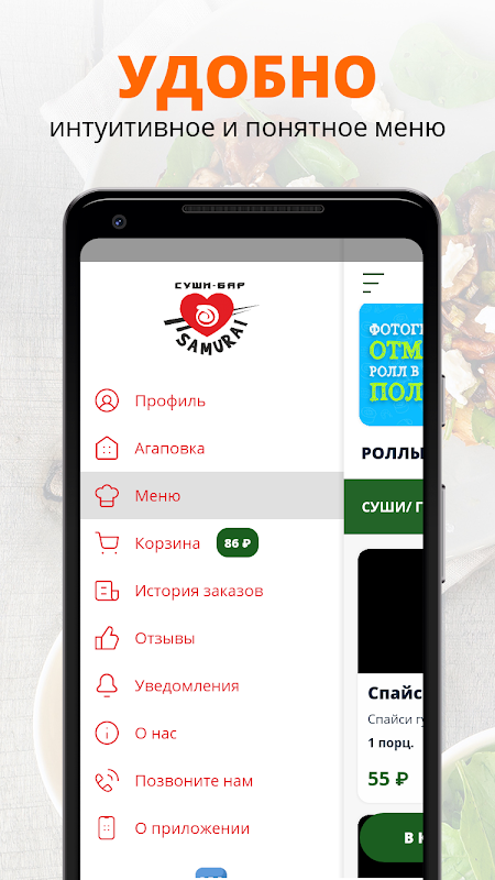 برنامه Sushi Bar Samurai یک راه راحت برای سفارش غذا به خانه یا محل کار شما است. همیشه در منوی ما - رول های خوشمزه، پیتزا، سالاد.