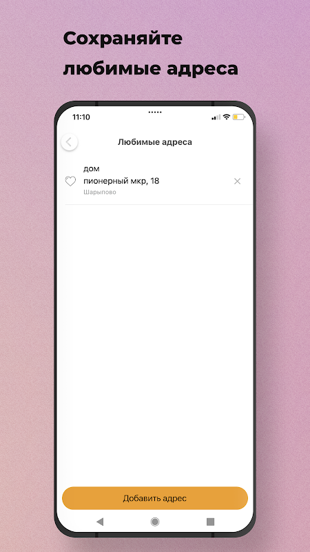 🕙 Заказывайте мгновенно при помощи шаблонов адресов и быстрого определения адреса подачи.