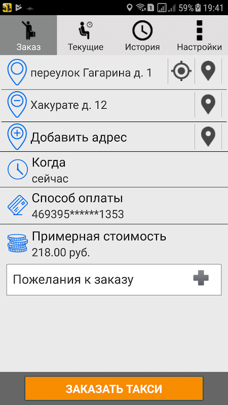 Вы сможете вызывать такси из любой точки города, не звоня при этом оператору и не ожидая подтверждение заказа. Для заказа такси нужно лишь заполнить пару полей в приложении или разрешить приложению найти Вас и помочь с заказом такси.