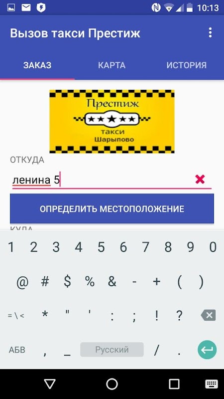 The application allows a smartphone to call a taxi Prestige Sharypovo