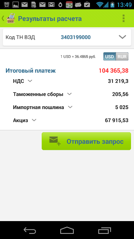 В связи с прекращением поддержки приложения, оно может работать некорректно. В дальнейшем рекомендуем использовать приложение "Альтерна - помощник ВЭД", в котором есть аналогичные с "Таможенным калькулятором" функции.