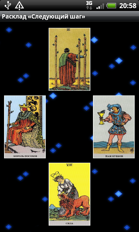 وقتی که شما آماده برای شروع به حدس زدن هستید، در چشم سحر و جادو تاروت را کلیک کنید. بعد با تکان دادن گوشی یا رایانه لوحی خود را برزدن. برای مشاهده تفسیر کارت شما نیاز به کلیک بر روی نقشه.