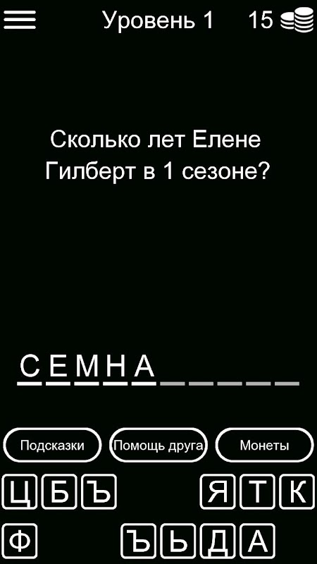 Принцип игры достаточно прост: задаётся вопрос, связанный с сериалом Дневники Вампира, а вам нужно на него ответить. Если вы не можете дать правильный ответ, можно воспользоваться 3 видами подсказок: убрать лишние буквы, открыть букву, открыть всё слово.