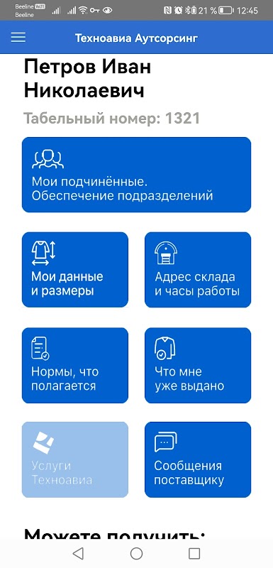 برنامه Technoavia به کارکنان شرکت ها اجازه می دهد تا اطلاعاتی در مورد نحوه تهیه لباس های مجلسی و همچنین تجهیزات حفاظتی شخصی در زمان واقعی دریافت کنند.