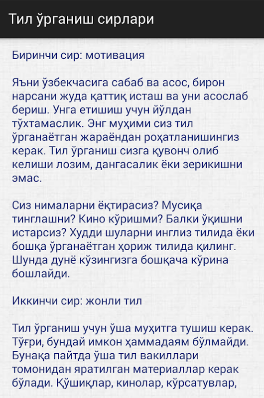 اطلاعات Тил ўрганиш сирлари APK