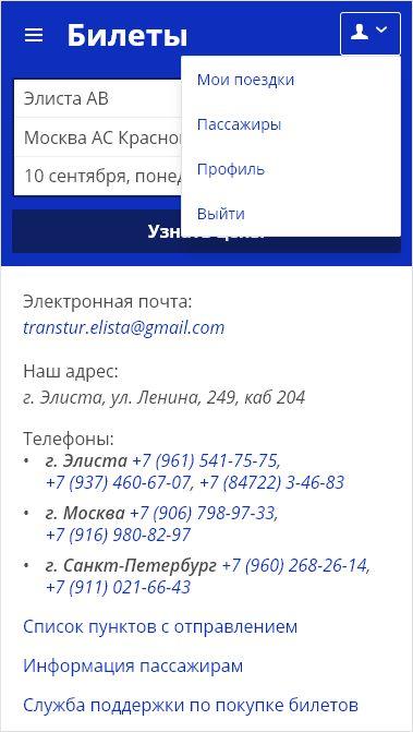 Транстур Элиста. Купить билеты 1.5.3