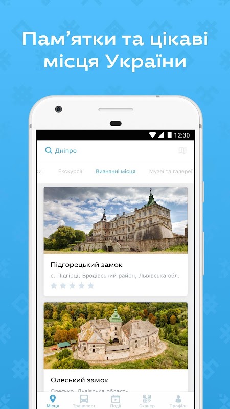 Тури та екскурсії, події Вашого міста, розваги та квитки на транспорт, готелі та ресторани всієї країни в одному додатку!