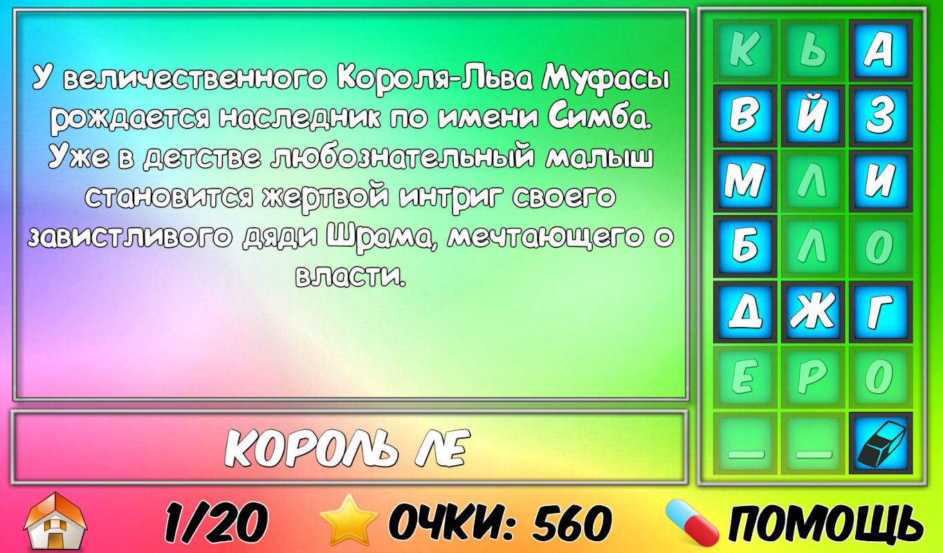 Игра понравится любителем мультфильмов, фильмов, головоломок, ребусов и викторин. Интересно будет играть как взрослым, так и детям.