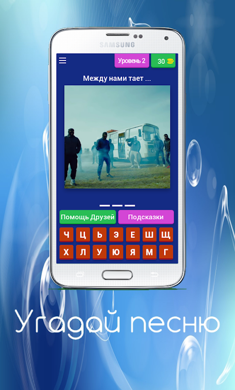 В данной игре представлены строчки из популярных песен и кадры из клипов.