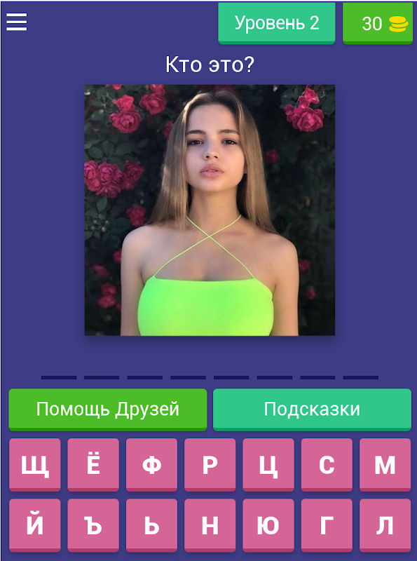 Так что начинайте грызть гранит Тик Тока и отгадывать кто же изображён на фото. И вы станете одним из тех не многих, кому удалось пройти эту игру до конца. Делитесь игрой и достижениями, а так же соревнуйтесь вместе со своими друзьями. Желаем удачи и приятной игры в приложение "Угадай Российского ТикТокера".