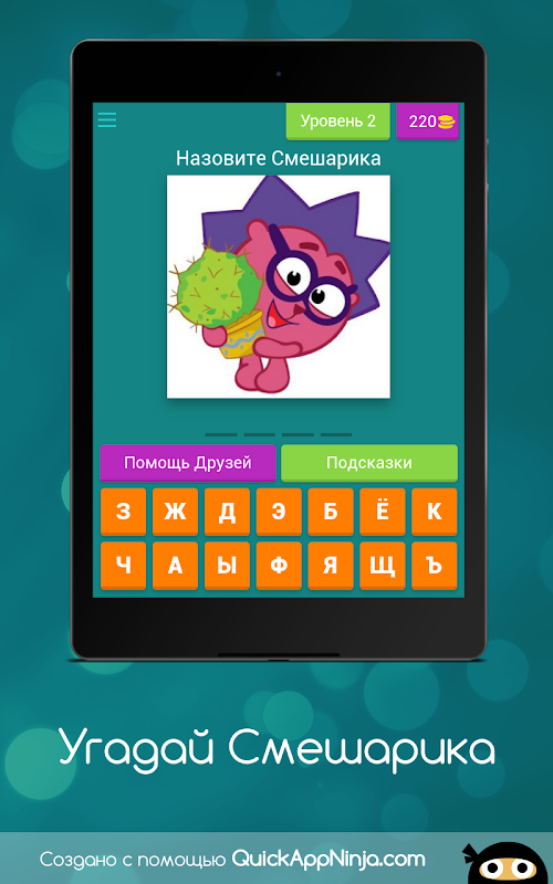 Любишь смотреть Смешариков ? Уверен(на), что знаешь много персонажов ? Тогда попробуй отгадать всех героев в этом приложении.