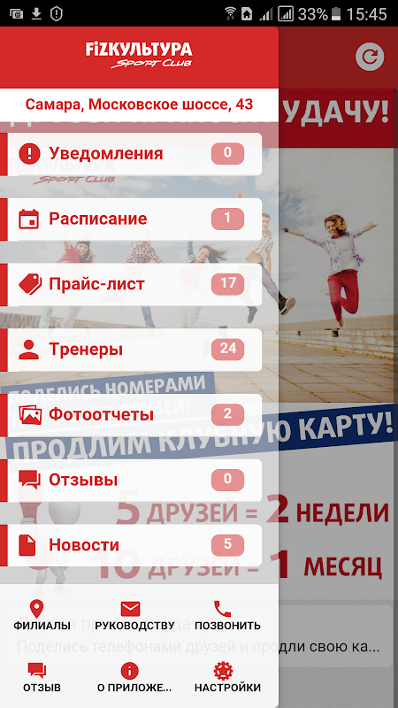 The official application for the clients of the sports club "FiZKULTURA" Samara.