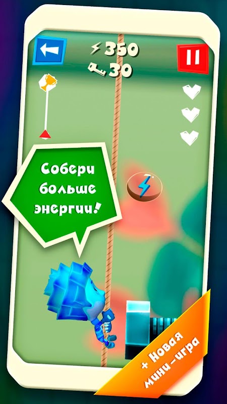 - 3 игры: катание на скейте, лазание по канату и ловля лампочек!