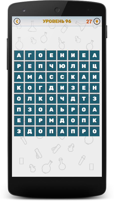 Выделяйте пальцем буквы и находите все слова, чтобы пройти уровень.