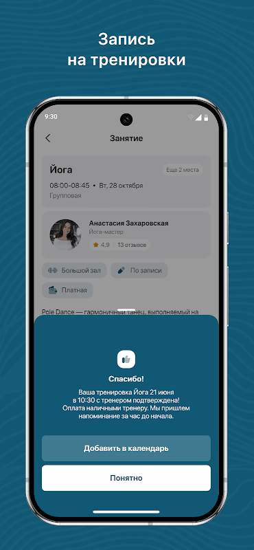 - ثبت نام برای آموزش گروهی و شخصی، ثبت نام برای ماساژ.