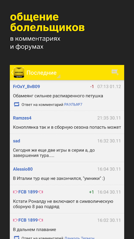 FC Borussia از Sports.ru بهترین برنامه برای طرفداران باشگاه فوتبال بوروسیا است. نتایج مسابقات و تقویم، پخش متن، اخبار و ویدیوها - همه چیز در مورد تیم مورد علاقه شما، به سرعت و با جزئیات. دنبال کردن بوروسیا هرگز به این راحتی نبوده است.
