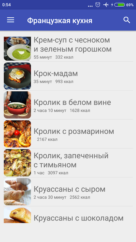 - Ориентировочное время приготовления блюда с картинками;