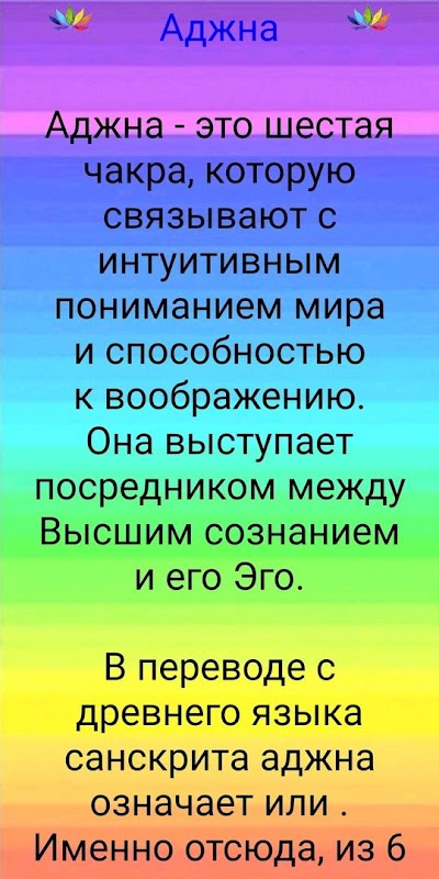 In the application, you will learn what the chakras are, the location of the chakras, what color are the main chakras, what the muladhara is responsible for - the first, red chakra, what the second chakra is responsible for, the orange chakra is responsible for the svadhisthana (sexual chakra), for which the third chakra is responsible, the yellow chakra is manipura chakra (will chakra), for which the fourth, green chakra is responsible - anahata chakra (heart chakra), for which the fifth chakra is responsible - vishudha chakra (throat chakra), for which the sixth chakra is responsible - ajna chakra (third eye), for which is responsible the seventh chakra - sahasrara chakra (connection with God).