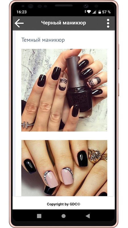 В нашем приложении Вы найдёте уникальные идеи маникюра, которые будут радовать Вас. С помощью приложения «Чёрный маникюр», Вы будете оригинально выделяться среди друзей и знакомых. В приложении вы найдете более 100 неповторимых идей маникюра и дизайна ногтей. В тоже время, Вы всегда сможете подобрать определенный стиль, который будет отличать Вас от окружающих. Наше приложение подойдет как взрослым самостоятельным женщинам, так и юным энергичным девушкам. Радуйте себя и будьте всегда на Олимпе стиля.
