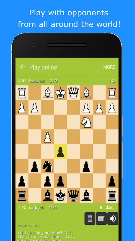 Free Chess is an easy to use and very intuitive app, with many game options, you can play with 10 levels of difficulty with the machine, play with a friend or online with people around the world!