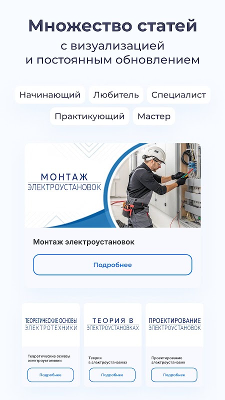 - بخش های مناسب برای برقکارها. شامل مقالاتی در مورد اصول الکترونیک، دستورالعمل های گام به گام است. هر بخش از برنامه شامل مثال هایی است که درک اصول توزیع ولتاژ و توان را آسان تر می کند.