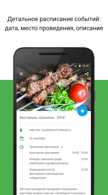 - Просматривать афишу интересных и актуальных событий на месяц: дата, время, место проведения, описание и фото