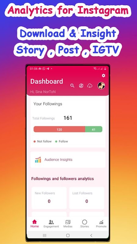 آنفالویاب جدید برای اینستاگرام Followers & Unfollowers plus lets you see insights on your instagram profile.