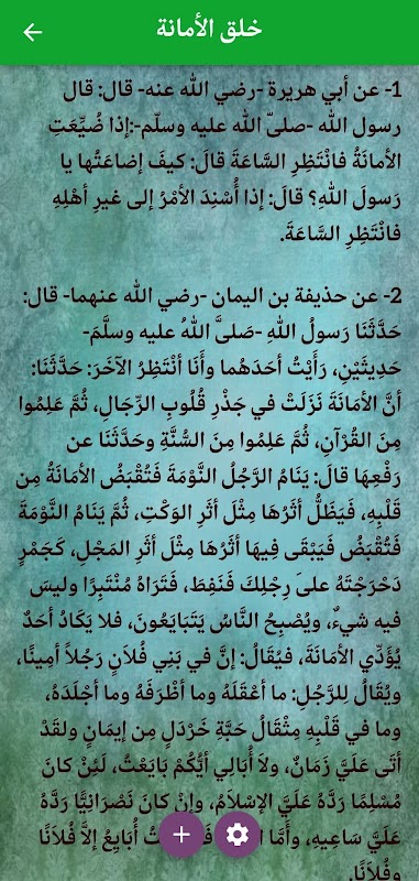 يحتوي تطبيق أحاديث نبوية عن الأخلاق على: