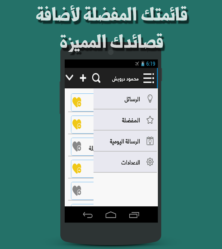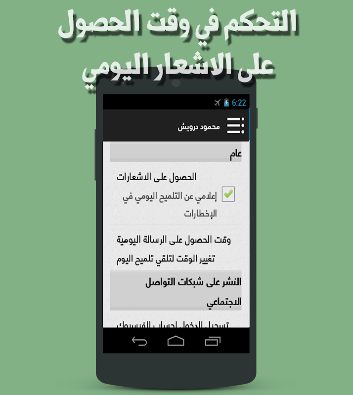 الخصائص والمميزات الموجودة في تطبيق أشعار محمود درويش :