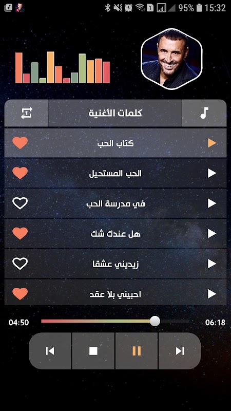 All Kazem El Saher's songs + words in one application without the net