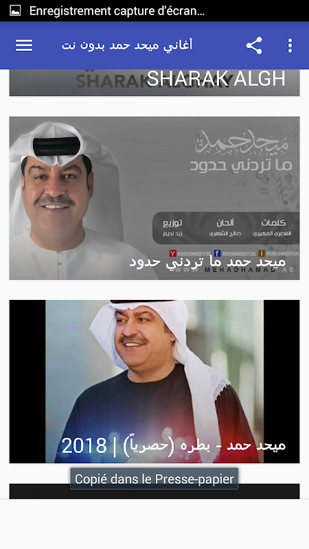 This program offers you all the songs of the exclusive Mehd Hamad without Net 2019