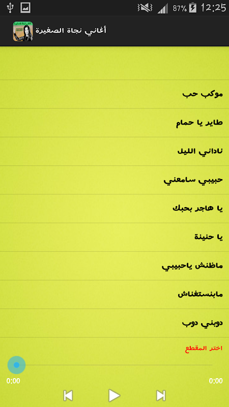يحتوي هذا تطبيق على أغاني نجاة الصغيرة.
