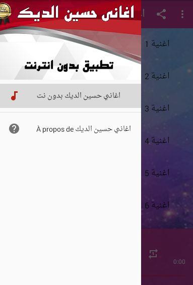 يحتوي التطبيق على اغاني حسين الديك الوعد وعد بدون نت واغاني حسين الديك مليون بحبك مليون بالاضافة الى حسين الديك mahlaki و خليني ببالك و نقطة ضعفي و غيرها من الاغاني كما يمكن من تنزيل اغاني عربية بدون نت و كدا استماع وتحميل جميع اغانى حسين الديك Mp3