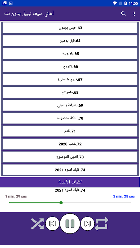 All the songs of the Iraqi artist Saif Nabil without the Internet in one application + the lyrics of the songs