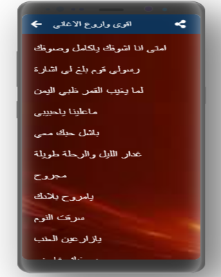 يحتوي هذا التكبيق على اقوى الاغاني منها: