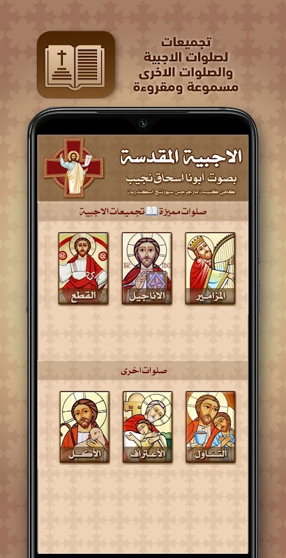 - تمام دعاهای Agbeya بدون صدای اینترنت و با صدای پدر ما اسحاق ناگیوب ، کشیش کلیسای گذرنامه سنت جورج - اسکندریه خوانده و شنیده می شوند.